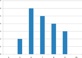 Variability refers to how “spread out” a group of scores is. To see what we mean by spread out, consider Figure 2.3 and Figure 2.4. These graphs represent the scores on two quizzes. The mean score for each quiz is 7.0. Despite the equality of means, you can see that the distributions are quite different. Specifically, the scores on Quiz 1 are more densely packed and those on Quiz 2 are more spread out. The differences among students were much greater on Quiz 2 than on Quiz 1.