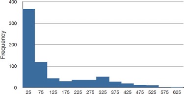 The distribution of baseball salaries (in 1994) shown in Figure 2.2 has a much more pronounced skew than the distribution in Figure 2.1.