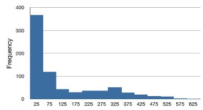 Figure 5.6 shows the salaries of major league baseball players in 1974 (in thousands of dollars). This distribution has an extreme positive skew.