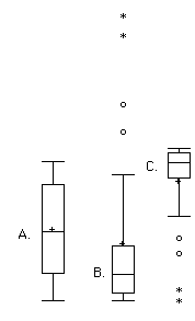 There are several steps in constructing a box plot. The first relies on the 25th, 50th, and 75th percentiles in the distribution of scores. Figure 2.7 shows how these three statistics are used. For each gender, we draw a box extending from the 25th percentile to the 75th percentile. The 50th percentile is drawn inside the box. Therefore, the bottom of each box is the 25th percentile, the top is the 75th percentile, and the line in the middle is the 50th percentile. The data for the women in our sample are shown in Table 2.9.