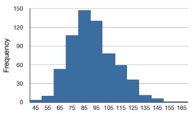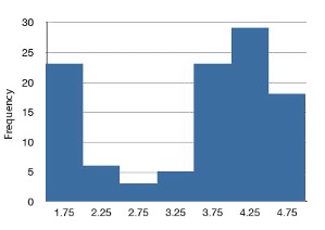 The distributions shown so far all have one distinct high point or peak. The distribution in Figure 2.3 has two distinct peaks. A distribution with two peaks is called a bimodal distribution.