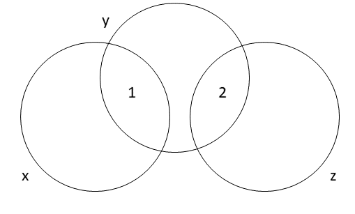But what about when the two independent variables x and z are uncorrelated? If the covariance between them is zero, then their variation is already independent (at least linearly independent). And therefore, finding the independent association of each one with y is equivalent to just finding the association with y. Using the Ballantine visual, there is no overlapping part 3 to subtract out, as seen in Figure 11.6.