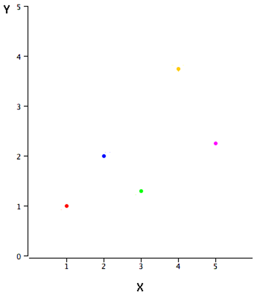 \(SSY\) is the sum of squared deviations from the mean of y. It is, therefore, equal to the sum of the y2 column and is equal to 4.597. The correlation (\(r\)) between \(X\) and \(Y\) is 0.6268, and there are 5 observations (n=5). Thus, the standard error of the estimate is: